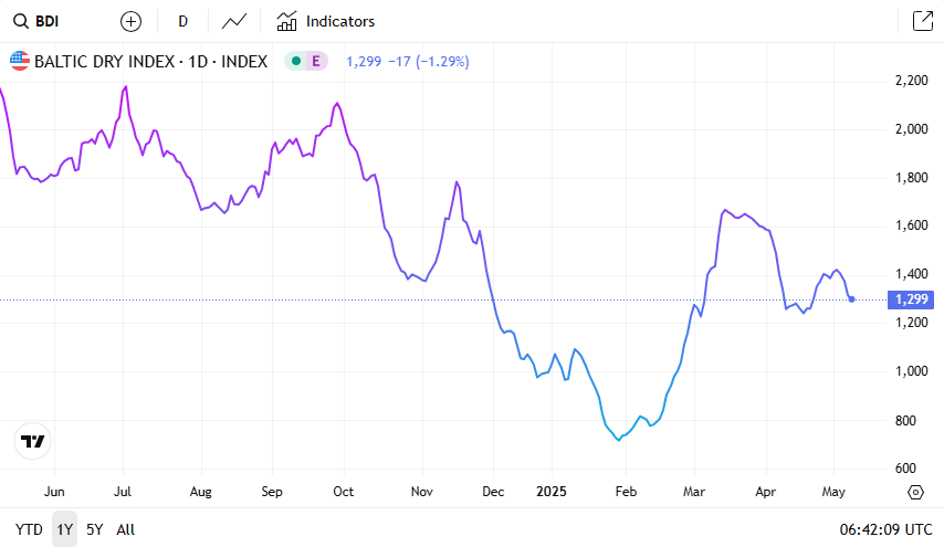 The Supramax segment remained relatively steady during the second week of May, with balanced activity across both the Atlantic and Pacific regions. While the Atlantic market showed little change, stable demand helped maintain freight rates at decent levels, particularly on routes from the U.S. Gulf to the Far East. Meanwhile, the Pacific region continued to benefit from cargo flows out of Indonesia, Australia, and South Africa, which provided moderate support to the market despite a slower pace of fresh inquiries from Southeast Asia. Noteworthy fixtures included a Supramax fixed at approximately $15,000 per day for a trip from the U.S. Gulf to China, while another vessel was reportedly secured at around $13,500 per day for a voyage from China via Indonesia to East Coast India. Trips within the Pacific basin, such as China via Australia or North Pacific back to China, hovered near $10,500 per day, reflecting a stable yet cautious sentiment. Elsewhere, vessels trading from West Coast India via South Africa to China were heard fixed at about $12,500 daily. As of May 7th, the Baltic Supramax Index (BSI) settled at $9,545 per day, marking a relatively unchanged position compared to the previous week, with overall market tone remaining firm but lacking clear upward momentum.